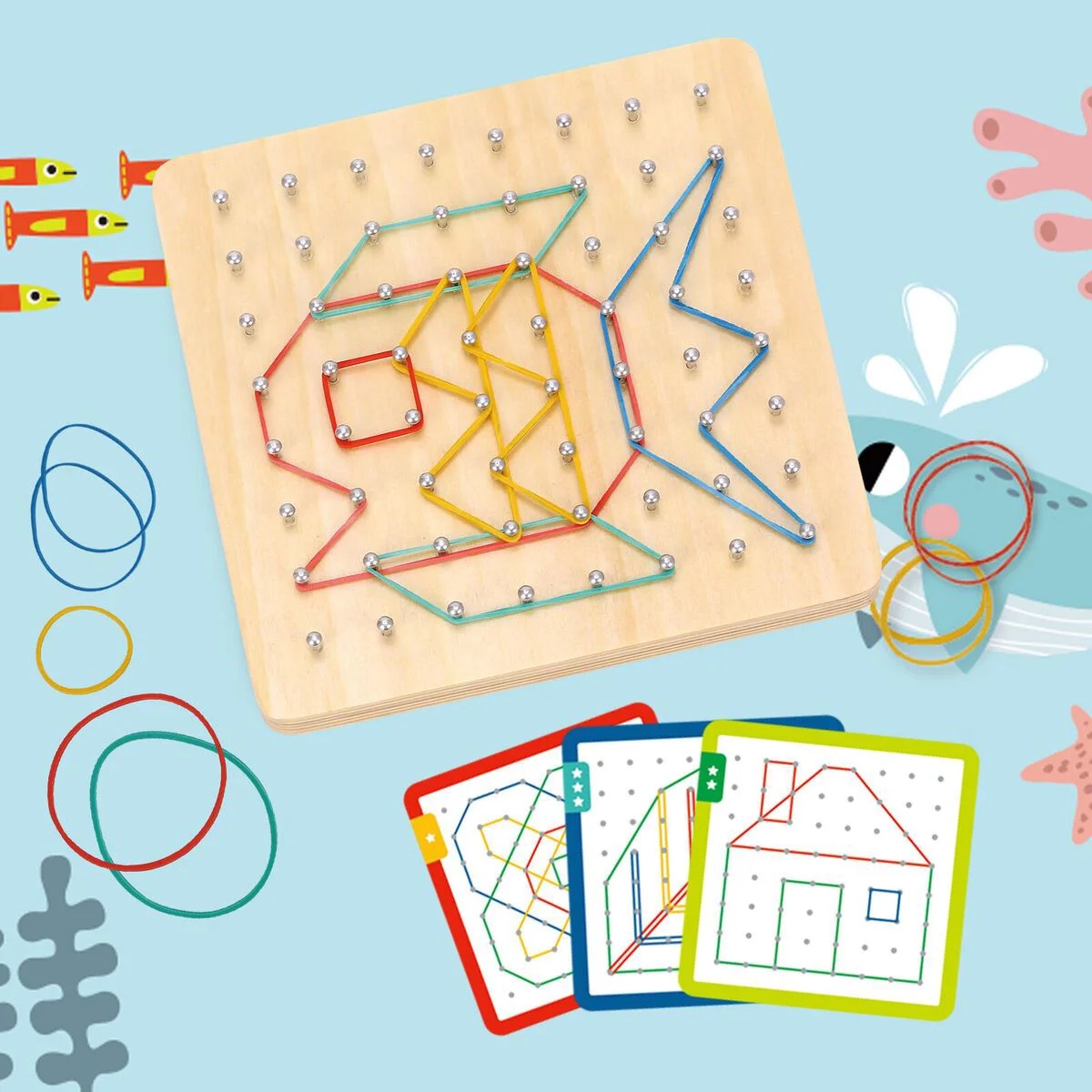 Joc educativ Tooky Toy Rubber Band Geoboard (TH248)