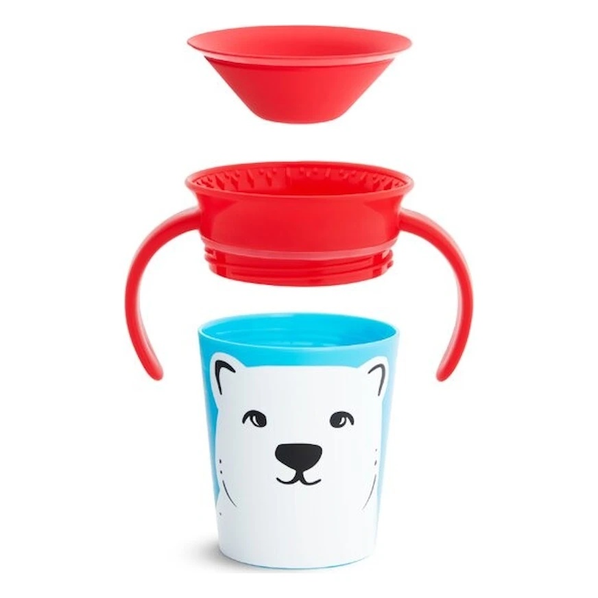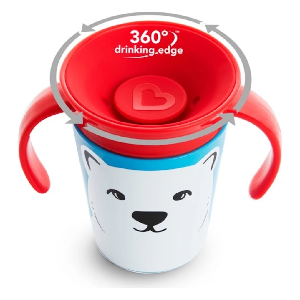 Cana Munchkin Miracle Wildlove, cu designul (180 ml), este concepută pentru a adăuga un strop de magie și distracție în timpul momentelor de învățare a bebelușului să bea independent. Această cană are o capacitate de 180 de mililitri și este proiectată să fie ușor manevrată de către mâinile mici ale bebelușului. Dispune de o supapă antiglont și anti-scursură, care previne scurgerile nedorite și permite bebelușului să bea fără a se murdări.