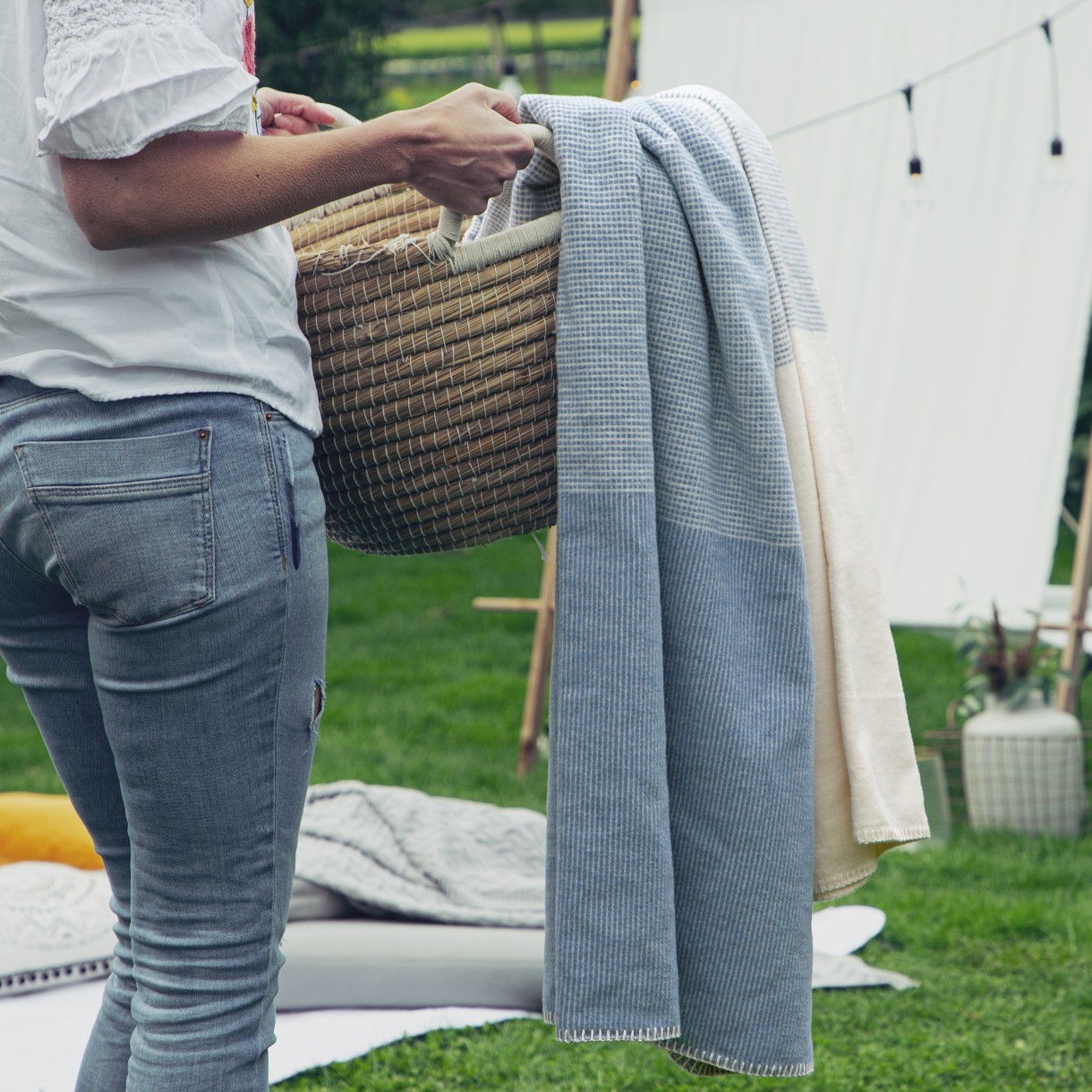 Pătura IBENA Jacquard Salerno Gots 140x200cm Blue/Ivory