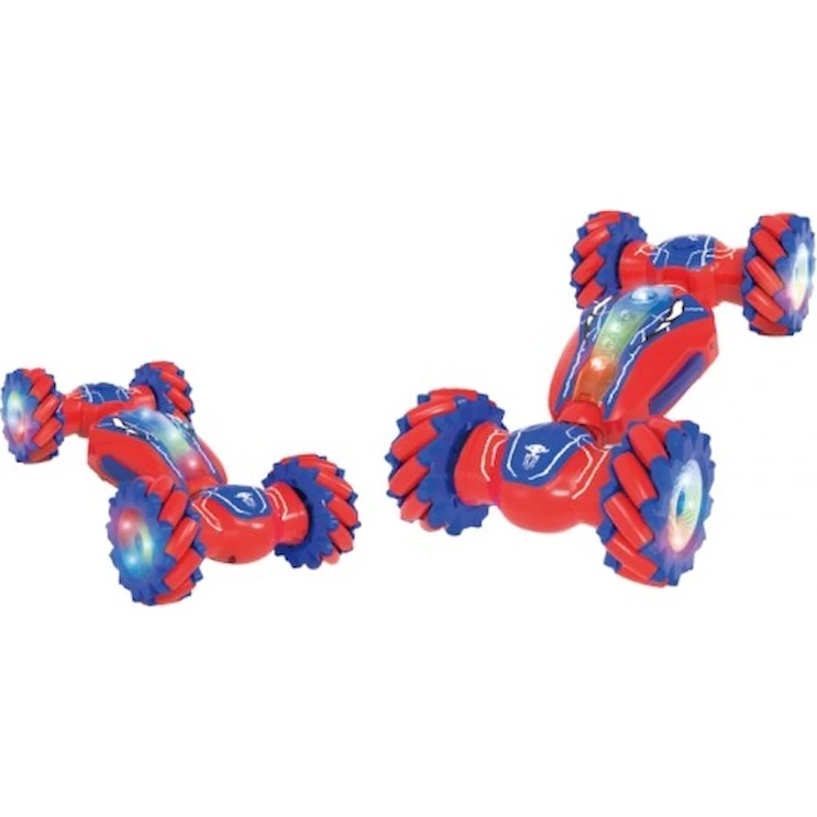 Masina R/C 4WD pentru acrobatii este o jucarie spectaculoasa si inovatoare, creata pentru copiii si adolescentii pasionati de viteza, cascadorii si tehnologie moderna. Datorita sistemului de tractiune integrala 4WD si rotilor speciale multidirectionale, masina poate executa rotiri la 360 de grade, rasturnari, drifturi si miscari acrobatice impresionante pe diverse suprafete. Modelul este echipat cu lumini LED multicolore, muzica integrata si un efect special de abur, care adauga un impact vizual puternic si transforma fiecare sesiune de joaca intr-un adevarat spectacol. Controlul se realizeaza atat prin telecomanda clasica, cat si prin manusa inteligenta de control prin miscari, oferind o experienta interactiva si intuitiva. Masina functioneaza cu o baterie reincarcabila de 3,7V, inclusa, care se incarca rapid prin cablu USB. Combinatia de culori rosu-albastru ofera un aspect dinamic si sportiv, facand acest model extrem de atractiv. Jucaria contribuie la dezvoltarea coordonarii, reflexelor si creativitatii, fiind ideala pentru joaca activa in interior sau in aer liber.