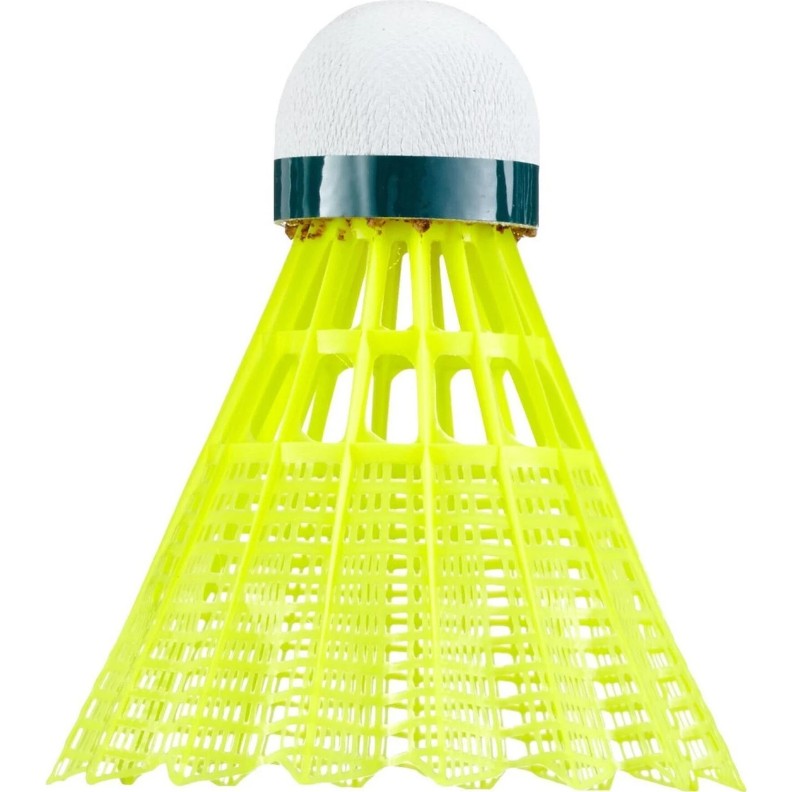 Fluturaș pentru badminton Victor Nylon 1000, galben-verde fabricat din nailon de înaltă calitate cu cap din plută naturală portugheză. Oferă o traiectorie stabilă a zborului și este recomandat pentru antrenamente și jocuri amatoare. Disponibil în trei viteze: lent (inel verde), mediu (inel albastru) și rapid (inel roșu).