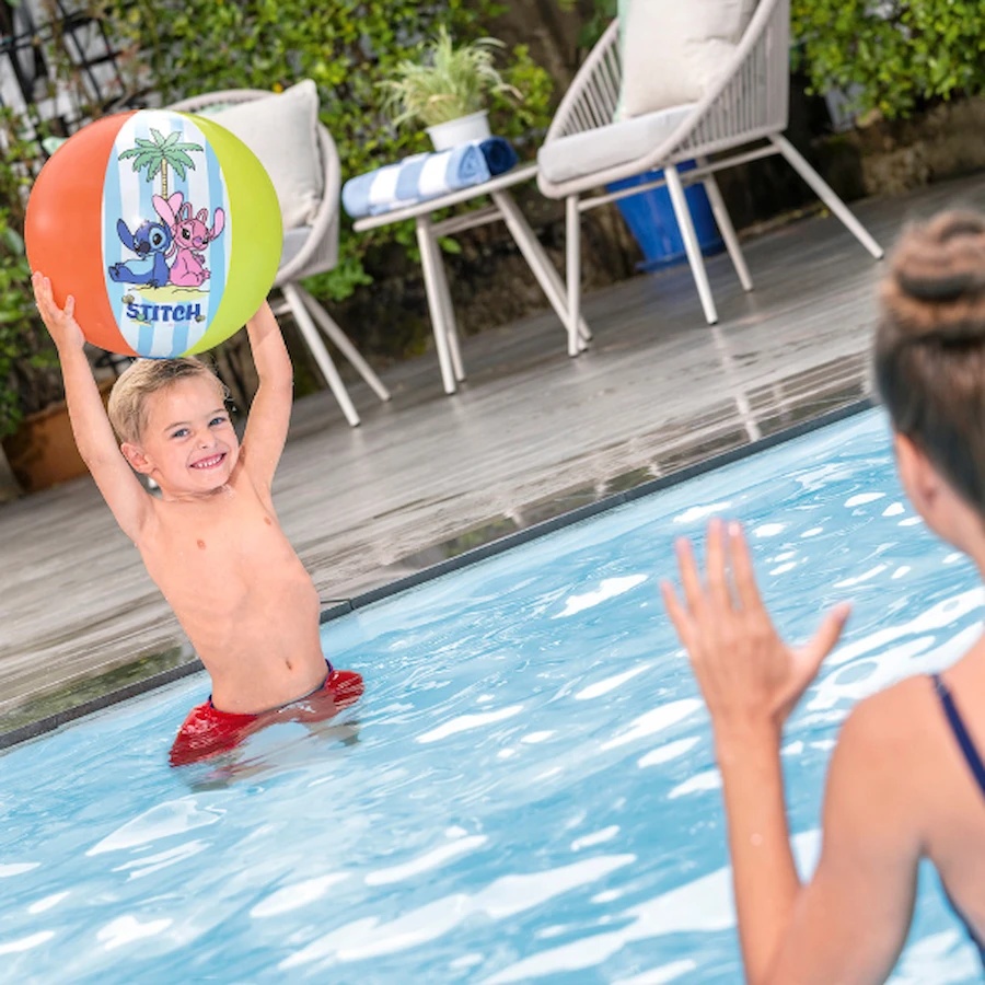 Cu un diametru de 34 cm când este umflată, mingea se potrivește perfect în mâinile mici ale copiilor și este recomandată pentru copii de la 2 ani în sus. Este ușor de aruncat, prins și împins pe apă. Designul viu și detaliat Disney® Lilo & Stitch stimulează imaginația și inspiră noi scenarii de joacă. Fie că este vorba de jocuri active în apă sau de distracții liniștite în piscină, această minge gonflabilă aduce bucurie și ajută la dezvoltarea coordonării mișcărilor într-un mod distractiv.