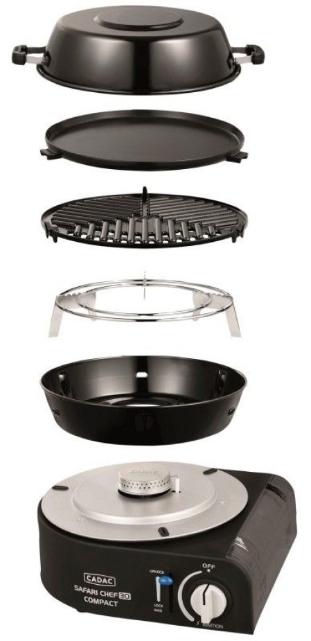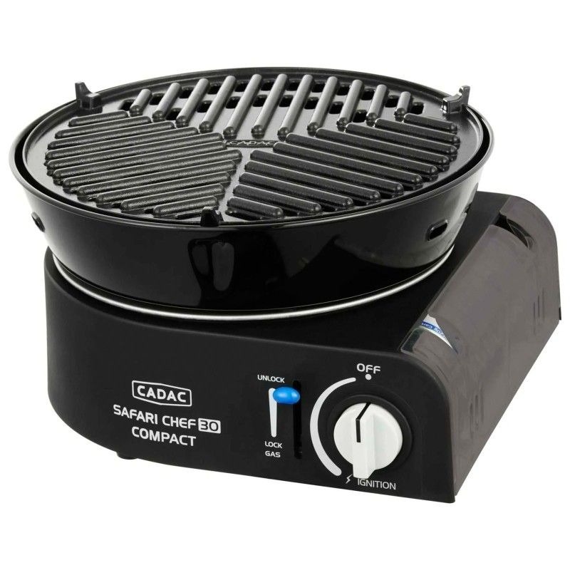 Considerat pe scara larga ca fiind gratarul numarul unu in Marea Britanie in materie de necesitati de camping si rulote, Safari Chef 30 Compact este cea mai noua piesa din gama Safari Chef 30. Acest gratar pe gaz ultracompact functioneaza direct de la o butelie de tip cartus de 227 g si cantareste mai putin de 4,5 kg, ceea ce il face ideal pentru drumetii, picnicuri si gratare in deplasare.