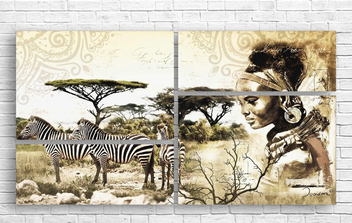Pictură ArtDesign African woman and zebras 132x72cm (F-10206)