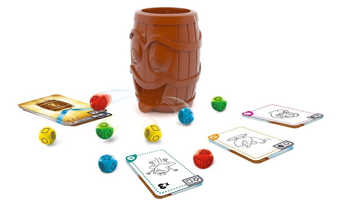 Barrel of Laughs este un joc de familie extrem de bun, în care toată lumea trebuie să-și îndeplinească sarcinile sălbatice din cărțile lor. Imitați o găină sau o locomotivă cu aburi, bate ritmul cu pantofii pe masă, căutați ceva roșu, alergați înapoi în jurul mesei - acestea sunt doar câteva dintre sarcinile care garantează distracție! Aruncă zarurile în butoi, finalizează sarcina cât de repede poți și intră în ring pentru vârful podiumului!Conținutul cutiei: butoi 8 cuburi de lemn 53 de cărți de activitate 3 cărți de podium regulile jocului card de ajutor. Recomandat pentru vârsta peste 5 ani. Scopul jocului: Scopul este de a finaliza sarcinile afișate pe cărți cât mai repede posibil și de a obține cea mai bună clasare posibilă. Cum se joacă:1. Întoarceți cartea de sarcină. 2. Aruncați zarurile și aruncați simbolurile de pe card. 3. Efectuați sarcina pe card. 4. Odată ce ai finalizat toate cele 3 sarcini, poți lupta pentru podium. 5. Jucătorul care poate obține cartea podiumului de locul 1 va fi câștigătorul jocului.