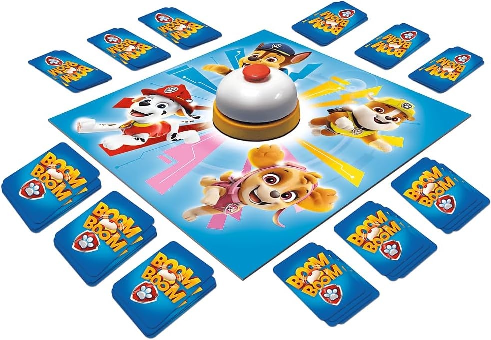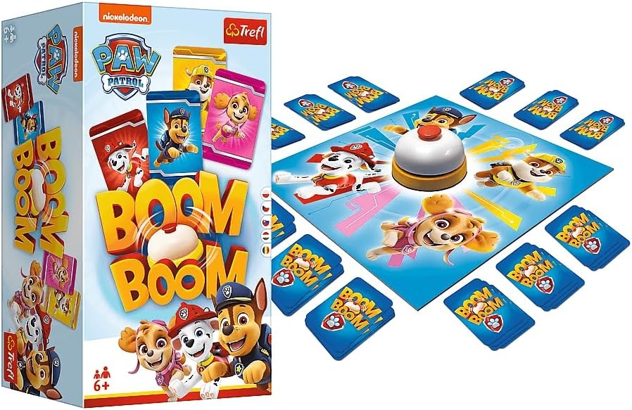 În Boom Boom, jucătorii încearcă să colecționeze seturi cu aceiași eroi din desenul animat pentru copii „Patrula Cățelușilor”. Jucătorii își schimbă simultan cărțile cu cărțile de pe tablă. După ce prinde 4 personaje identice, jucătorul sună clopoțelul și semnalează colectarea unei stive gata pregătite. Jucătorii pot căuta cărți de același tip, făcând jocul și mai captivant. Jucătorul care își colectează toate seturile de eroi Patrula Cățelușilor este câștigătorul!
