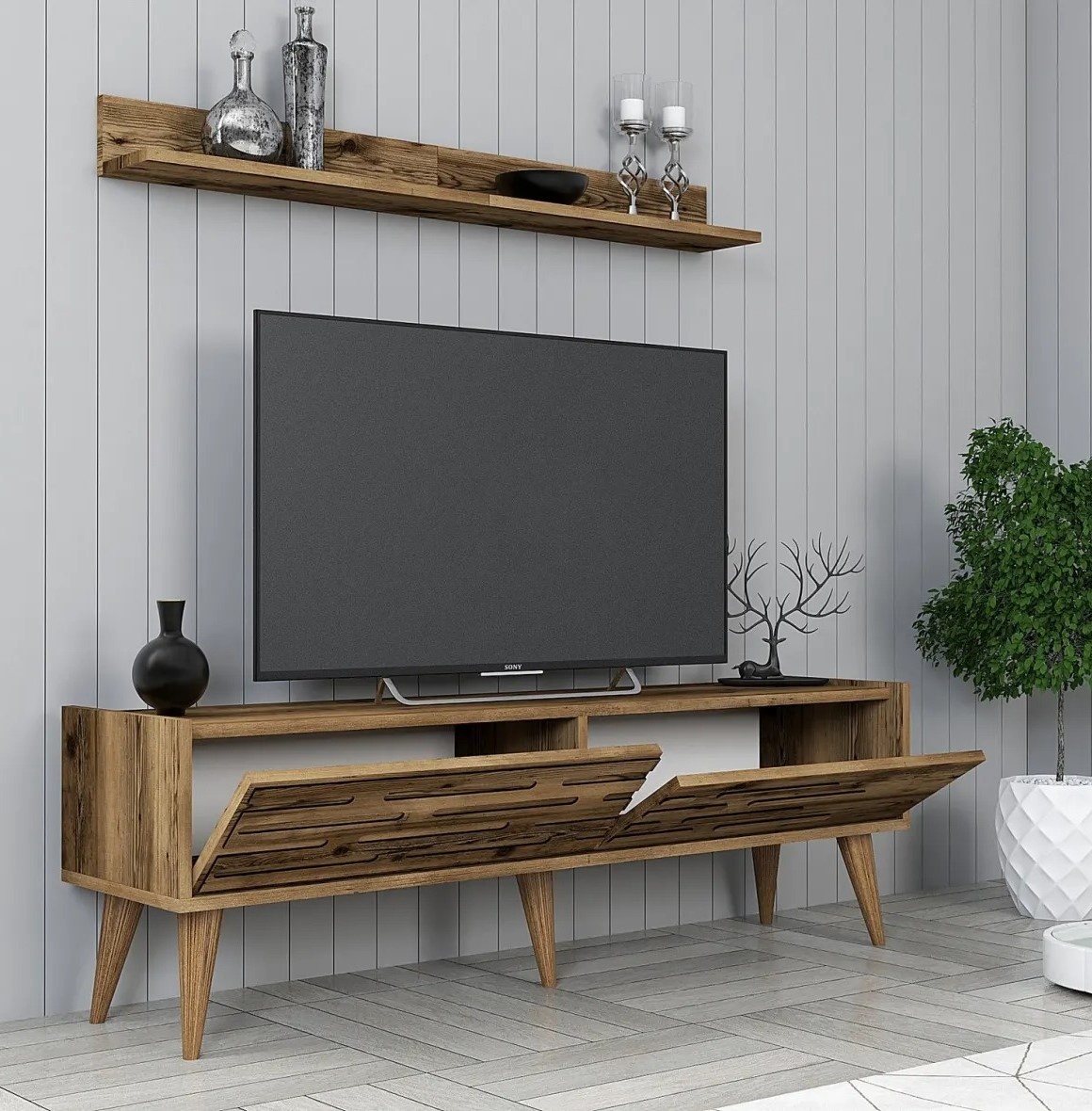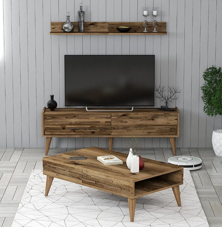 Setcomod pentru TV, raft de perete, masuța de cafea