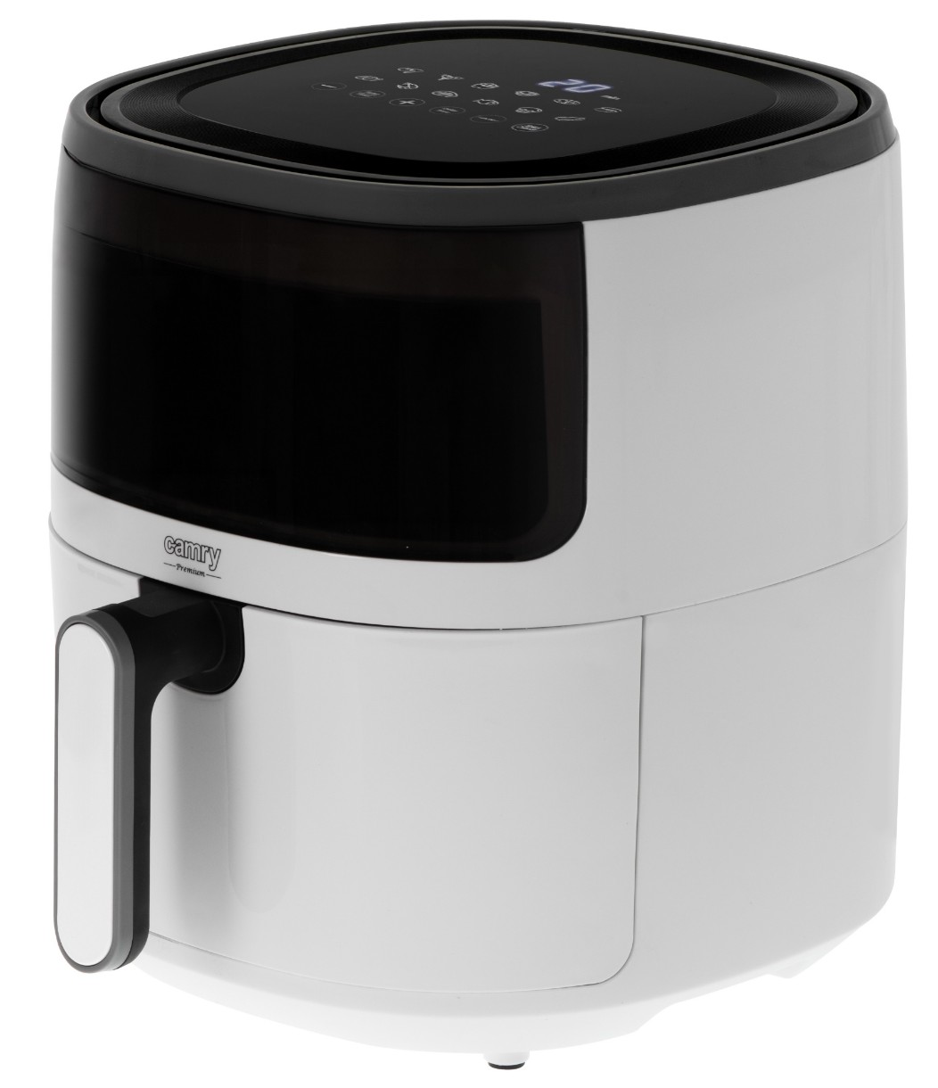 Friteuza cu aer Camry CR-6313 - cu o putere de 1500 W și un volum de 5 litri, concepută pentru gătit cu un consum minim de ulei. Este echipat cu 12 programe automate, inclusiv prăjirea cartofilor prăjiți, a puiului, a fripturilor, a peștelui, a pizzei, a produselor de patiserie și a altor preparate. Dispozitivul are un panou de control tactil, un cronometru de până la 60 de minute și o funcție de pornire întârziată, ceea ce asigură ușurința în utilizare. Bolul detașabil cu înveliș antiaderent îl face ușor de curățat după gătire. Acest model dispune, de asemenea, de o fereastră de vizualizare și picioare antiderapante pentru siguranță și confort sporit.