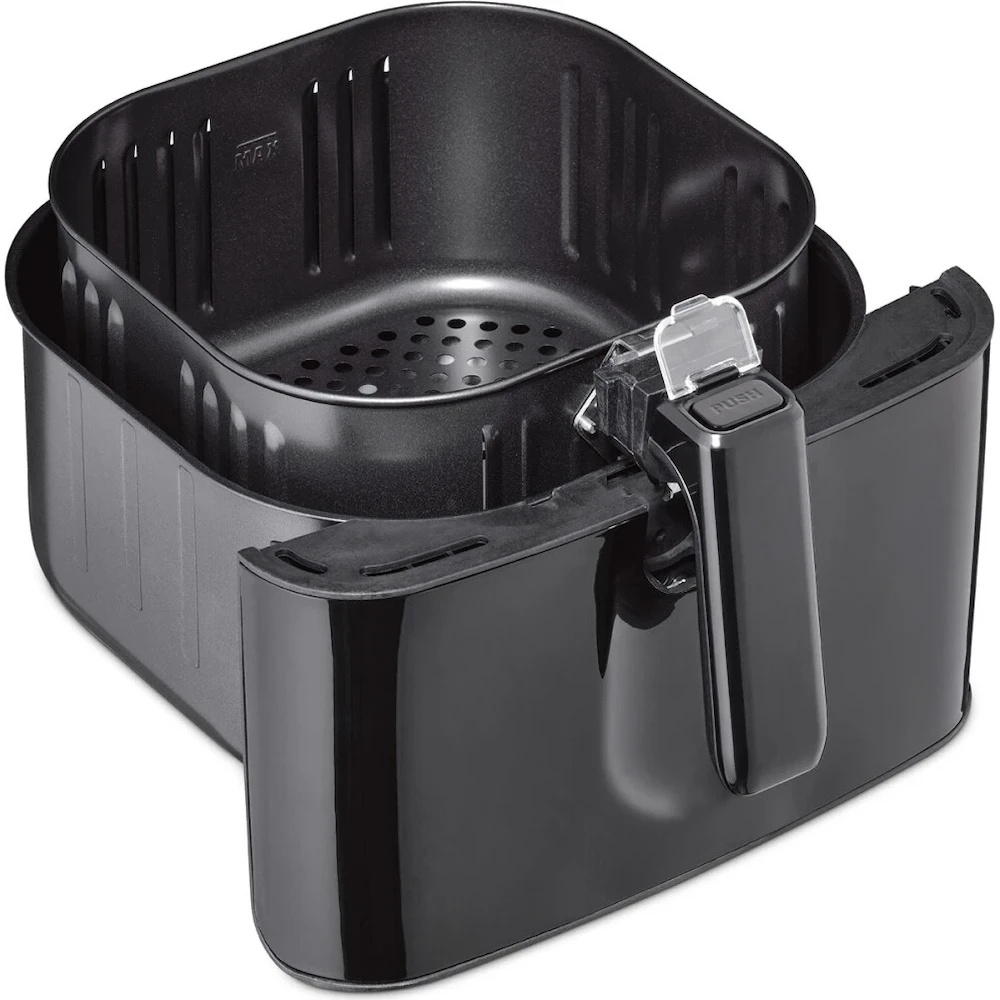 La finalizarea procesului de gătire, dispozitivul se oprește automat, însoțit de un semnal sonor. Curățarea și întreținerea sunt extrem de simple datorită coșului detașabil cu un strat antiaderent.