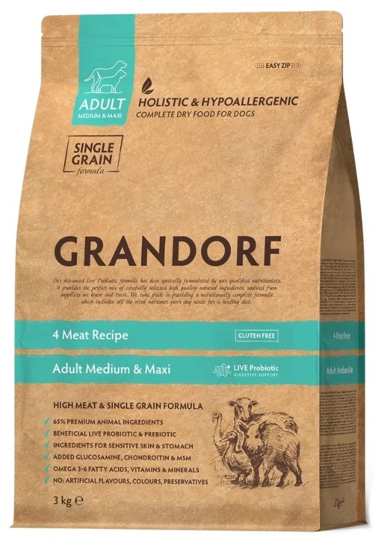 Hrană uscată pentru câini Grandorf Adult Medium & Maxi 4 Meat 3kg