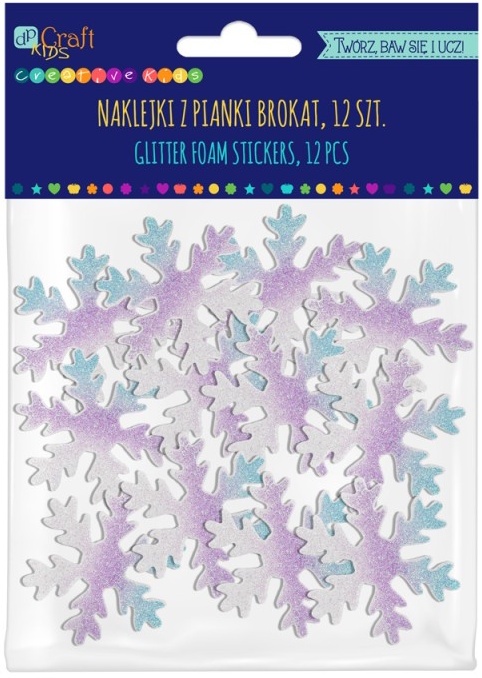 DPCraft Snowflakes 12pcs (KSPI‑403) este un set de autocolante voluminoase din spumă cu sclipici, în formă de fulgi de zăpadă. Aceste stickere decorative sunt perfecte pentru proiecte creative tematice de iarnă, scrapbooking, felicitări, caiete sau orice alt material de decor. Suprafețele cu sclipici și textura moale conferă un efect vizual atractiv și o adâncime aparte lucrărilor tale. Se aplică ușor pe suprafețe netede și, dacă este nevoie, pot fi îndepărtate fără a lăsa urme, oferind flexibilitate în utilizare. Un accesoriu ideal pentru activități creative cu copii sau pentru pasionații de artă și decorațiuni sezonale.