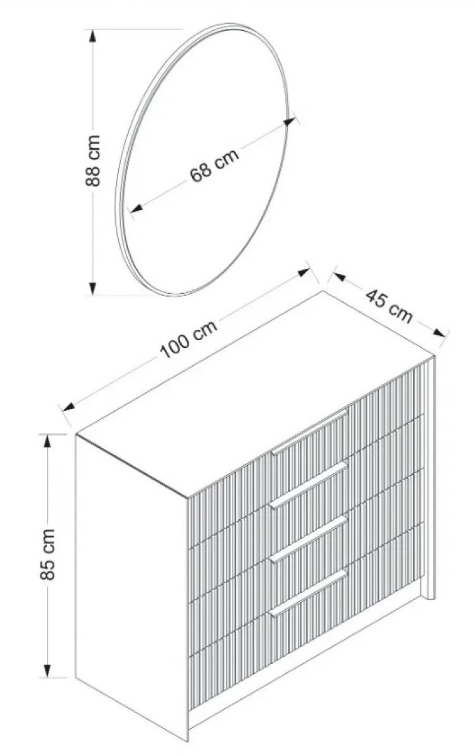 Cu sertarele sale spațioase, comodul oferă suficient loc pentru depozitarea ordonată a hainelor, accesoriilor și altor obiecte. Ajută la menținerea ordinii și organizării spațiului, fiind o piesă funcțională și elegantă.