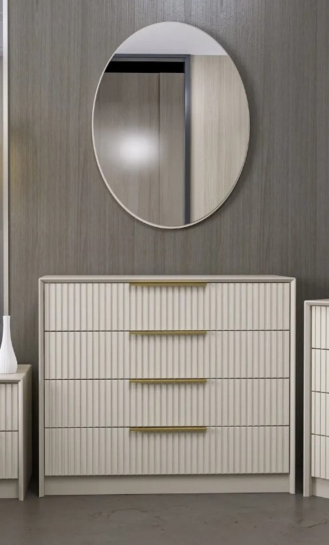 Transformați dormitorul într-un sanctuar elegant cu acest comod. Această piesă modernă și rafinată îmbunătățește instantaneu aspectul oricărei camere, oferind în același timp spațiu suficient pentru toate obiectele esențiale.