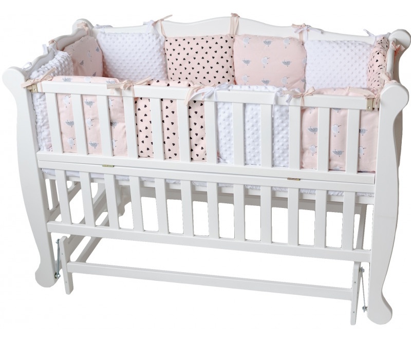 Mecanismul de legănare a patului este - pendul transversal. Prin urmare, cu ajutorul rulmenților metalici, părinții își pot adormi copilul în tăcere. Dacă este necesar, rulmenții pot fi fixați cu ușurință, iar patul va fi într-o poziție statică.