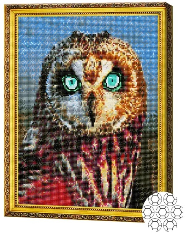 Pictura cu diamante după numere Art Gallery Premium Голубоглазая сова GA82012