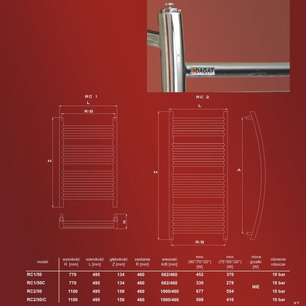 Uscător de prosoape Dagat Almeria RC1-50C Chromium