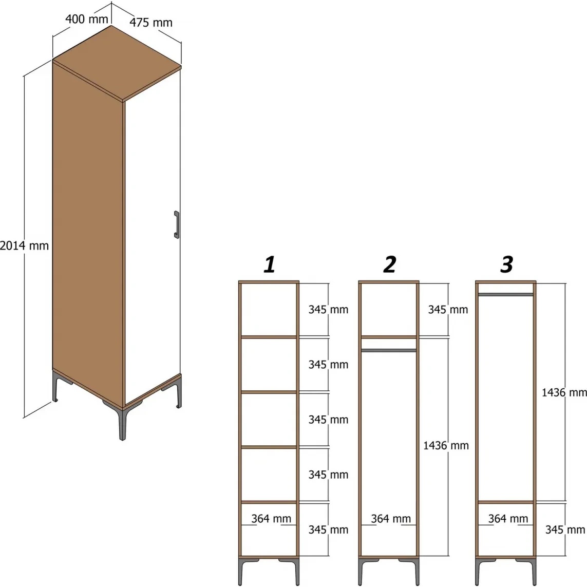 Dulap Trendy Kumsal S Walnut/Anthracit 201.4x47.5x40cm GTR001709