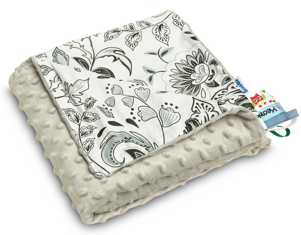 Pătura ușoară minky este o soluție perfectă pentru plimbările de primăvară-vară. Este confectionata din bumbac moale si tesatura delicata minky, iar in functie de necesitati poate fi folosita pe ambele fete. Fiecare model al păturii are o supraimprimare de culoare diferită. Pe pătură există și panglici colorate care vor atrage atenția fiecărui copil. În acest moment, această pătură este disponibilă în două culori și în curând vor apărea încă trei. O pătură universală și ușoară pentru un cărucior sau un pătuț de dimensiunea 75×100 cm.