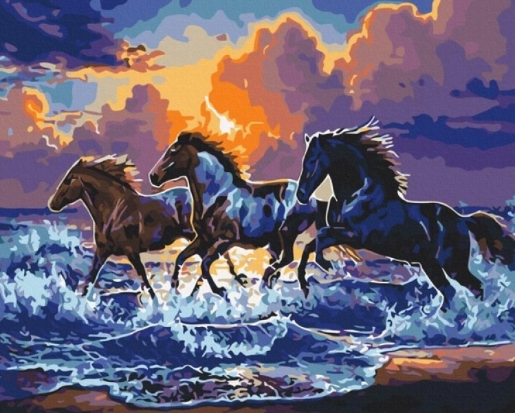 Tablou pe numere Brushme Табун черных лошадей (BS34306)