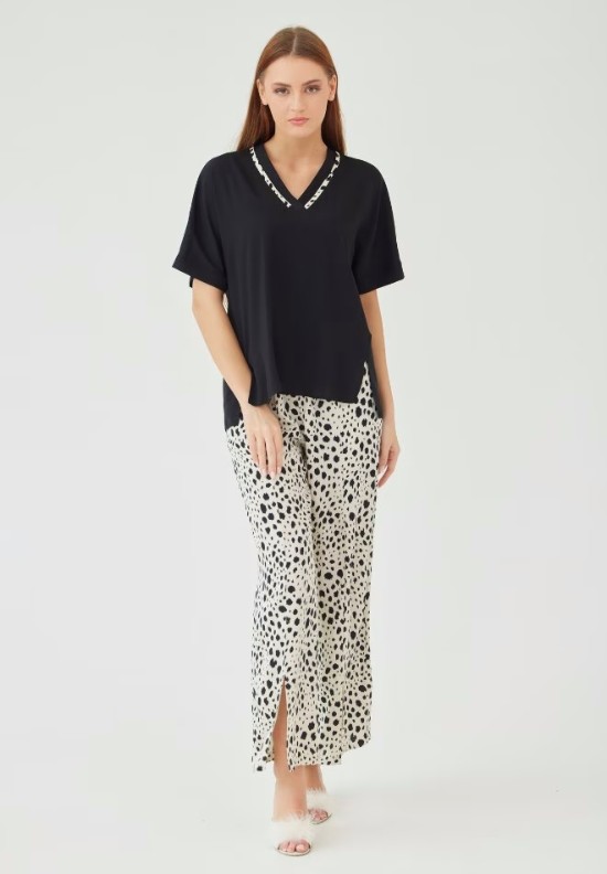 Pijama Ajoure C23623 Black/Print Leopard, s.S