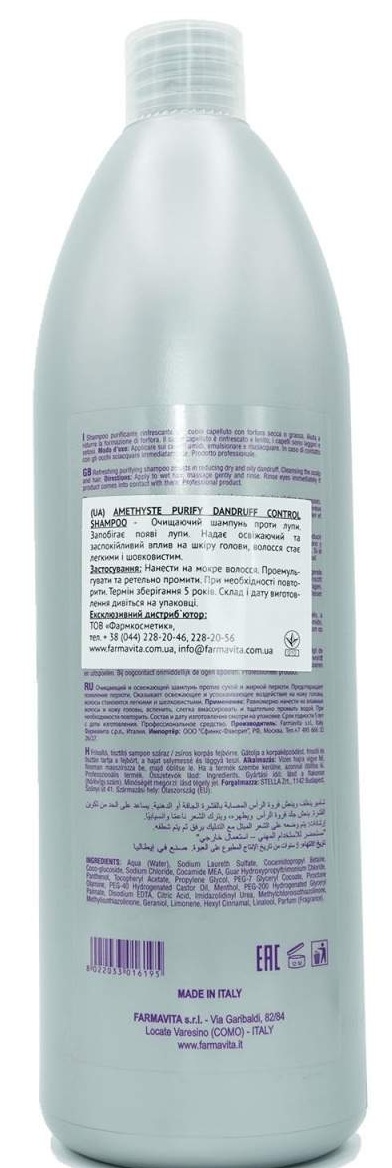 Șampon pentru păr Farmavita Amethyste Purify Dandruff Control 1000ml