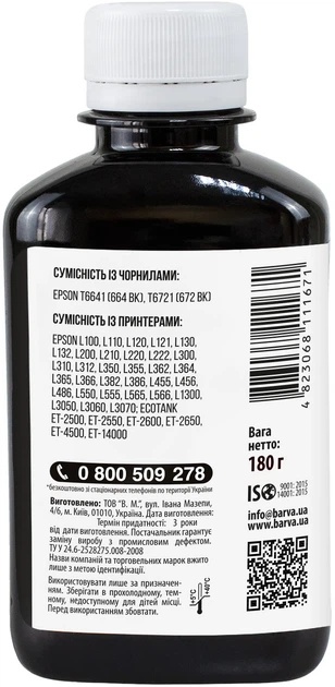 Recipient de cerneală Barva Epson L100 Black 180ml (L100-399)