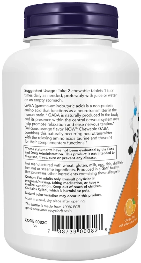 NOW Foods GABA sub formă de tablete masticabile este un supliment alimentar conceput pentru a susține sănătatea sistemului nervos și pentru a promova relaxarea generală.