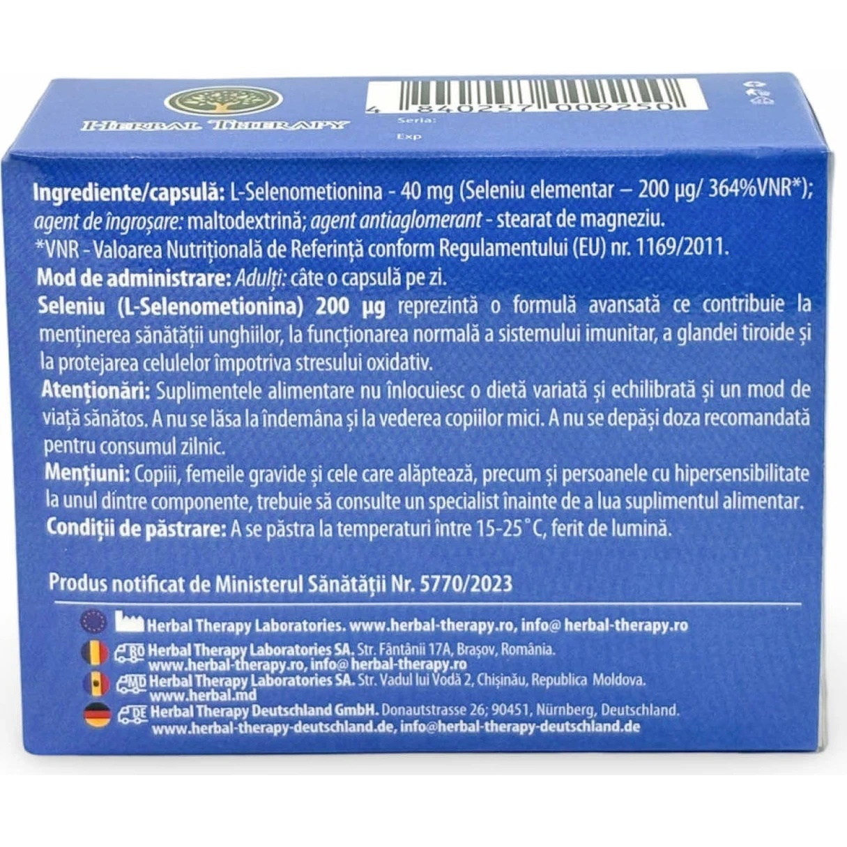 Vitamine Herbal Therapy Seleniu 200mcg 30cap