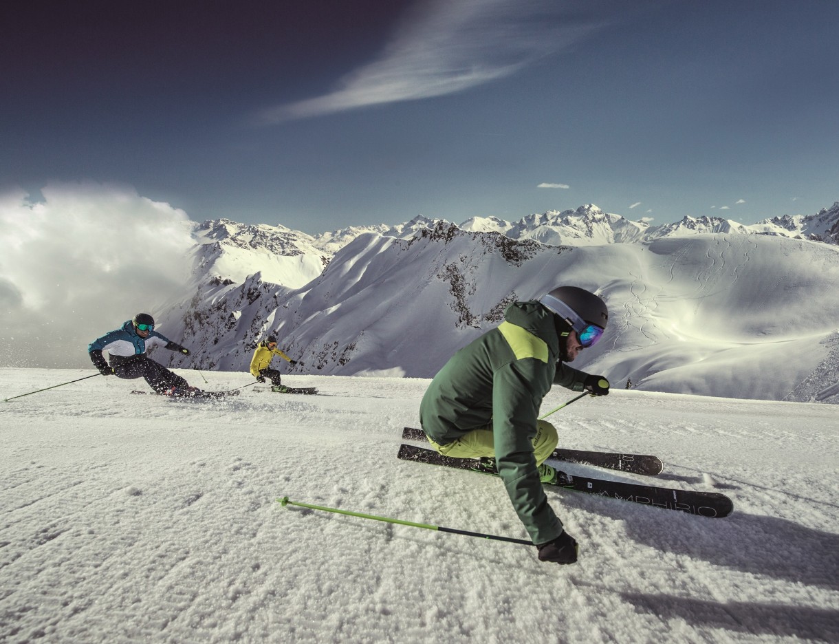 Profilul AMPHIBIO este un design revoluționar care combină atât rocker-ul, cât și devierea greutății — în plus, cu o împărțire clară în schiuri stânga și dreapta;