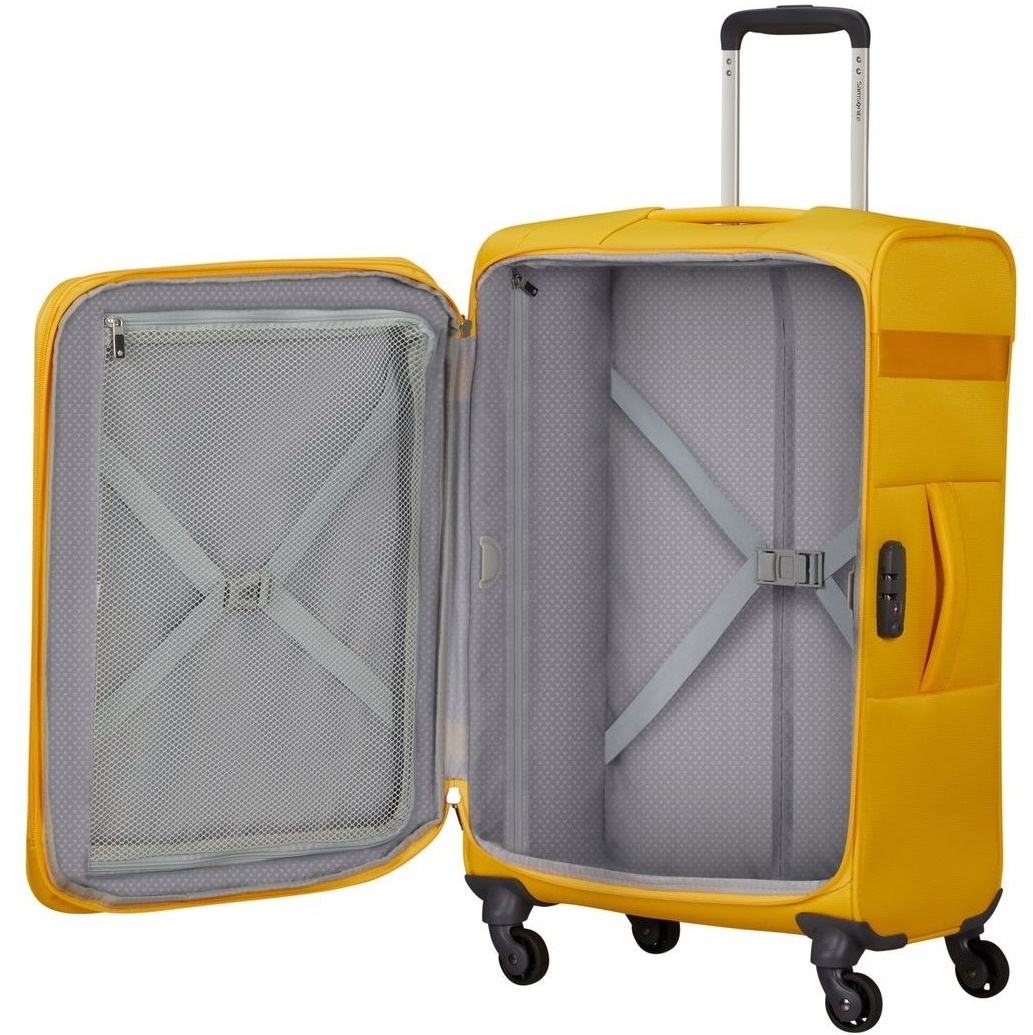 Valiza cu 4 roți Samsonite Citybeat Spinner este inspirată de ritmurile orașului modern. Cu siguranță va atrage acei călători care preferă stilul clasic combinat cu o funcționalitate largă și un preț rezonabil. Designul acestei valize cu patru roți din țesătură ușoară a fost atent gândit: toate elementele metalice și accentele ușoare se armonizează perfect cu toate culorile din colecție.