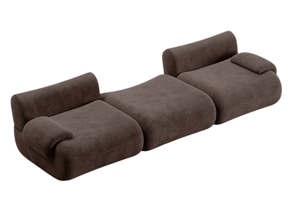 Set modular format din canapea și banchetă, cu design curbat și tapițerie.Canapeaua oferă un confort relaxant datorită formei ergonomice și spătarului jos, ideal pentru interioare moderne sau minimaliste. Bancheta poate fi folosită ca suport pentru picioare, loc suplimentar de șezut sau element decorativ.