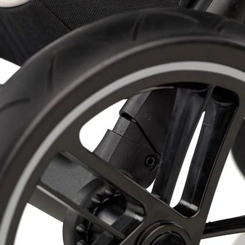 Coș mare de cumpărături: până la 4 kg/18 litri. Scaun detașabil, cu fața sau cu spatele, potrivit de la naștere. Volan din piele ecologică reglabil pe înălțime (80–105 cm). Sistemul Pro-Fix (patentat) blochează și deblochează scaunele auto și căsuța dintr-o singură mișcare, eliminând necesitatea truselor de instalare.