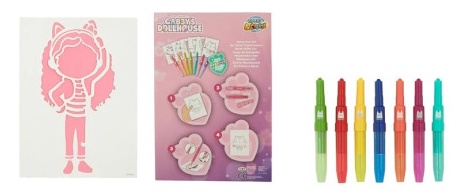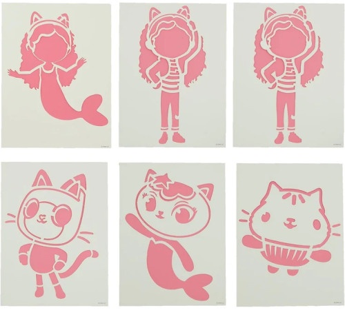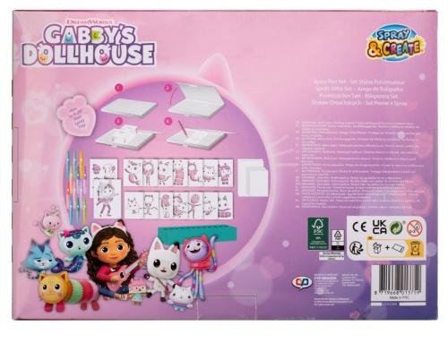 Mânerele de pulverizare funcționează pe principiul suflării din spate. Așezați șablonul pe o foaie de hârtie și îndreptați pistolul de pulverizare spre zona pe care doriți să o pictați. Hai să o aruncăm în aer! Poți combina cu ușurință culorile între ele pentru a crea cele mai frumoase opere de artă în stilul Gabby's Dollhouse.