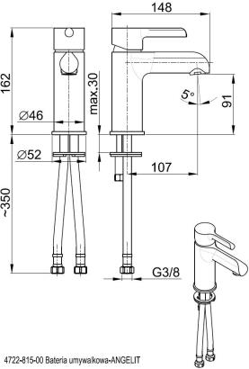 Specificații Baterie lavoar Armatura Angelit (94304)