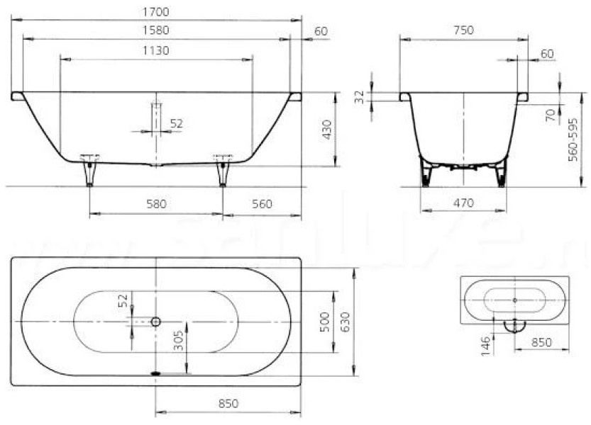 Cadă de baie Banoperito Classic Duo 170x75 (113564)