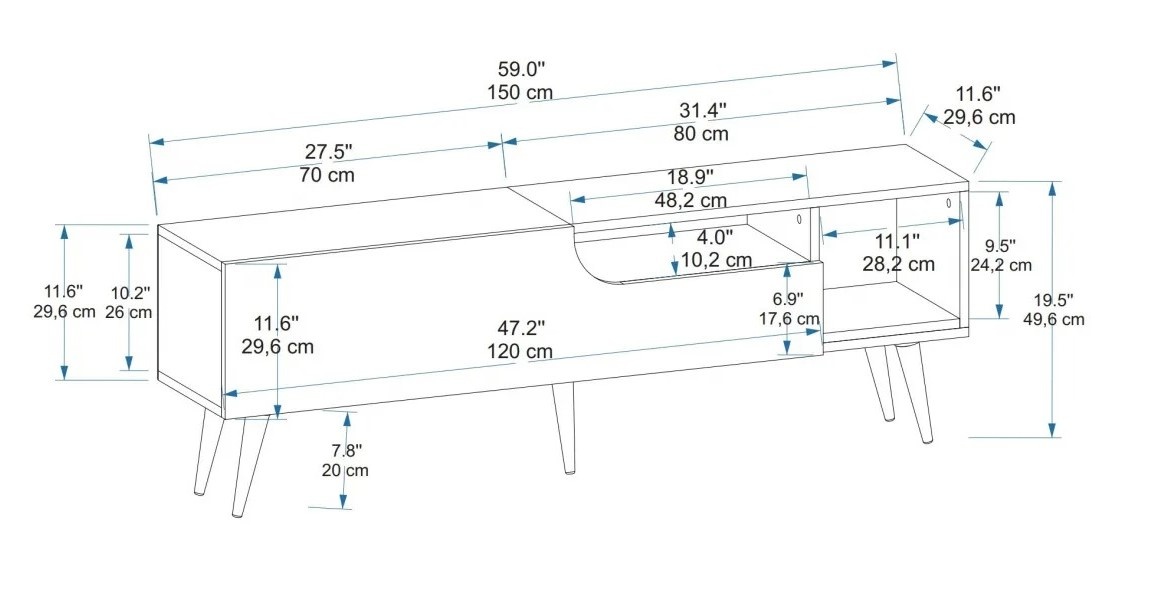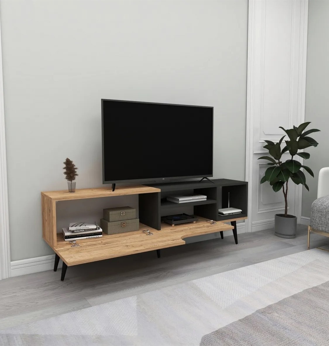Comodă TV Trendy Alba Pine Atlantic/Anthracit/Black 150x29.6x19.5cm GTR006350