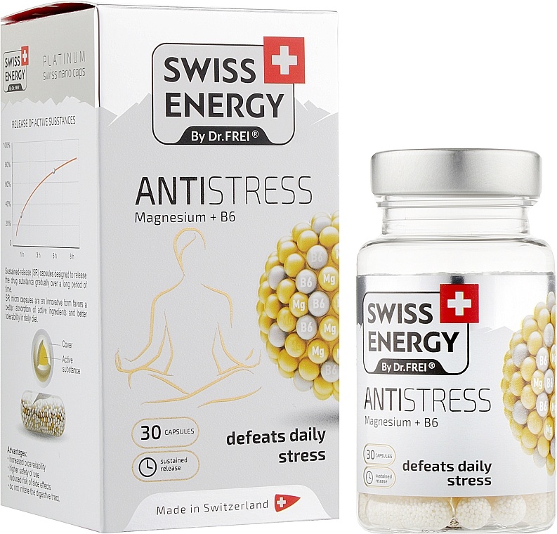 poate fi utilizat pentru stresul fizic și psiho-emoțional ca o sursă suplimentară de vitamina B6. Vitamina B6, în combinație cu magneziul, ajută la reducerea oboselii, contribuie la funcționarea normală a sistemului nervos și menține echilibrul psihologic. Condiții de utilizare, cantitatea (porția) suplimentului alimentar este recomandată pentru consumul zilnic: adulții și adolescenții de la 14 ani iau 1 capsulă pe zi cu un pahar de apă în timpul sau după mese. Se recomandă consultarea cu un medic înainte de utilizare. Doza zilnică maximă este de 1 capsulă pe zi. Durata consumului: 30 de zile, în viitor, perioada de utilizare este convenită cu medicul. Un supliment alimentar nu este un medicament. Fără OMG. Atenție la consum: Nerecomandat în caz de hipersensibilitate la componente. Femeile gravide și femeile care alăptează, persoanele în vârstă sau orice persoană cu orice afecțiune medicală trebuie să consulte un medic înainte de a utiliza acest produs. Suplimentele dietetice nu trebuie utilizate ca înlocuitor pentru o dietă hrănitoare. Depășiți cantitatea recomandată indicată (porție) pentru consum zilnic. A nu se utiliza după data de expirare tipărită pe ambalaj.