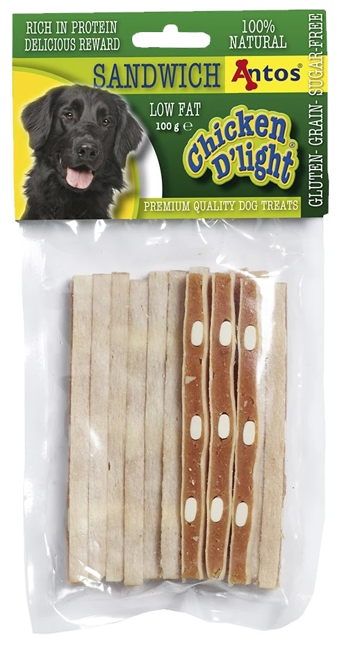 Snackuri pentru câini Antos Chicken D'light Sandwich 100g (20164)