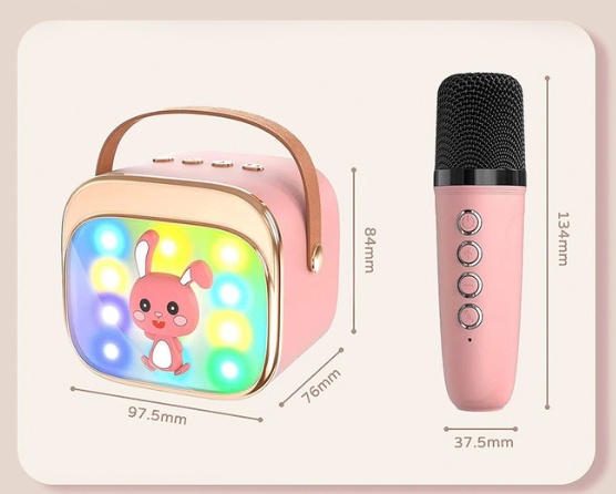 Boxa karaoke wireless cu două microfoane este o soluție portabilă de divertisment pentru întreaga familie. Designul elegant și dimensiunile compacte o fac perfectă atât pentru camera copilului, cât și pentru petreceri. Cele două microfoane wireless permit cântatul în duet sau pe rând, iar luminile LED colorate creează o atmosferă de scenă adevărată.