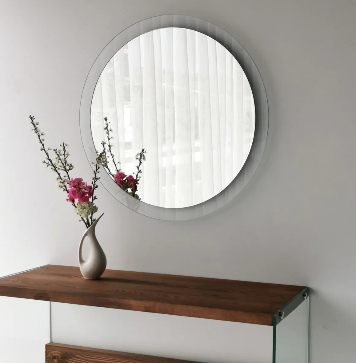Oglinda este realizată din sticlă 100% călită de înaltă calitate, asigurând durabilitate și rezistență. Grosimea de 2 cm adaugă senzația de lux, iar suprafața netedă reflectă frumos lumina, creând iluzia unui spațiu mai mare și mai luminos.