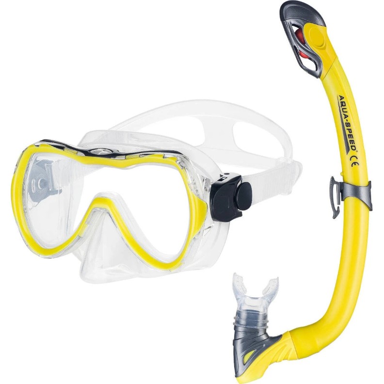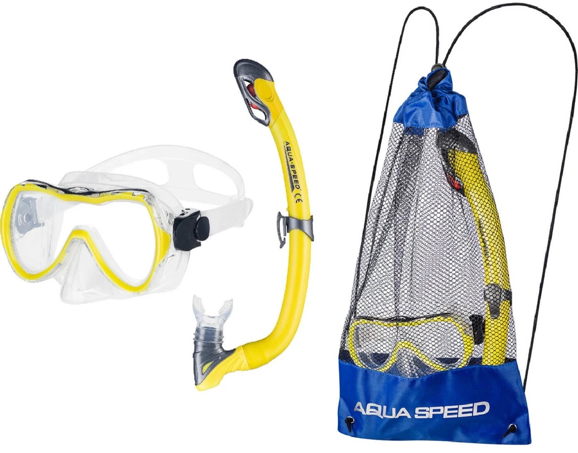 Setul pentru scufundări — masca și tubul Aqua Speed Enzo + sacul din plasă Samos 18 Mesh Bag Yellow — este creat pentru cei care iubesc confortul și libertatea de mișcare în apă. Este potrivit pentru relaxare la mare și explorarea lumii subacvatice, permițându-vă să luați cu ușurință echipamentul cu dumneavoastră și să vă bucurați de fiecare scufundare.