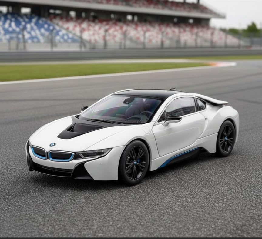 Acest model de colecție BMW i8 de la RASTAR, la scara 1:43, reprezintă o încarnare rafinată a designului futurist în miniatură. Realizat din metal turnat rezistent, automobilul atrage privirile cu finisajul său alb strălucitor și liniile aerodinamice impecabile ale caroseriei.