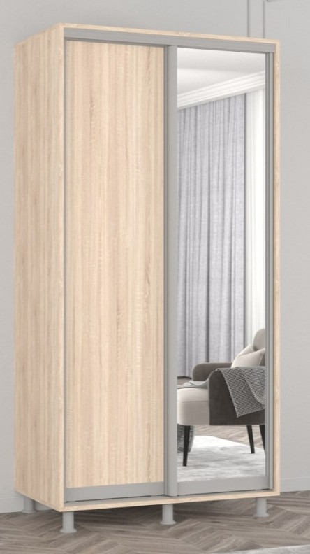 Dulap cu uşi glisante Mobildor-Lux Aron Chipboard/Mirror 100x210 Oak Sonoma (aron769)