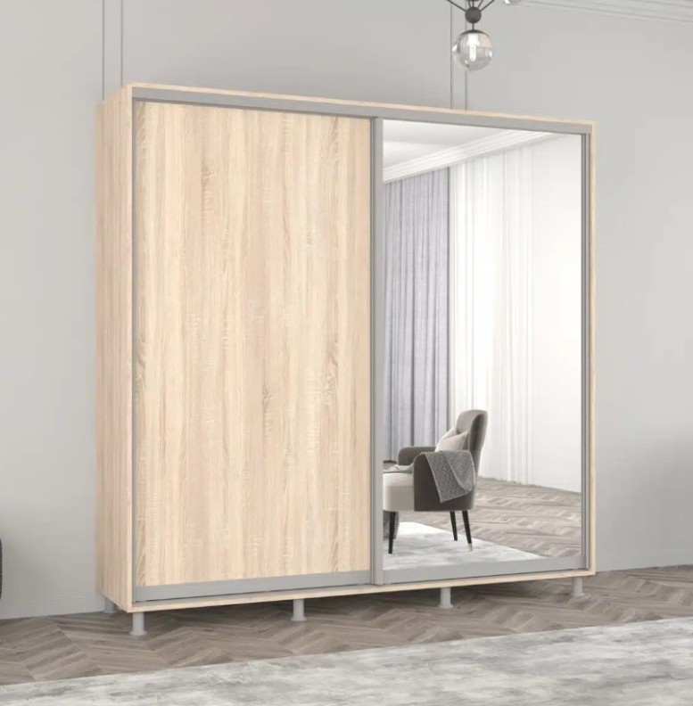 Dulap cu uşi glisante Mobildor-Lux Aron-S Chipboard/Mirror 190x220 Oak Sonoma (arons9866)
