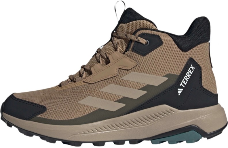Botinele pentru bărbați adidas Terrex Anylander Mid - sunt încălțăminte fiabilă pentru drumeții și activități în aer liber, creată pentru o mișcare sigură pe teren accidentat. Înălțimea medie a gulerului oferă suport optim pentru glezne și protecție împotriva pietricelelor și a resturilor, menținând în același timp ușurința și flexibilitatea necesare pe traseu.