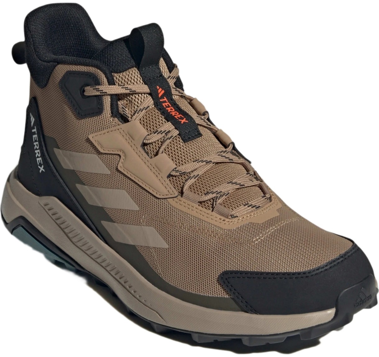 Botinele pentru bărbați adidas Terrex Anylander Mid - sunt încălțăminte fiabilă pentru drumeții și activități în aer liber, creată pentru o mișcare sigură pe teren accidentat. Înălțimea medie a gulerului oferă suport optim pentru glezne și protecție împotriva pietricelelor și a resturilor, menținând în același timp ușurința și flexibilitatea necesare pe traseu.