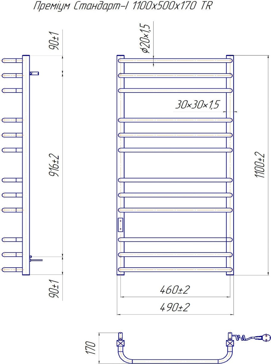 Uscător de prosoape Mario Premium Standard-I 1100х500/170 TR K