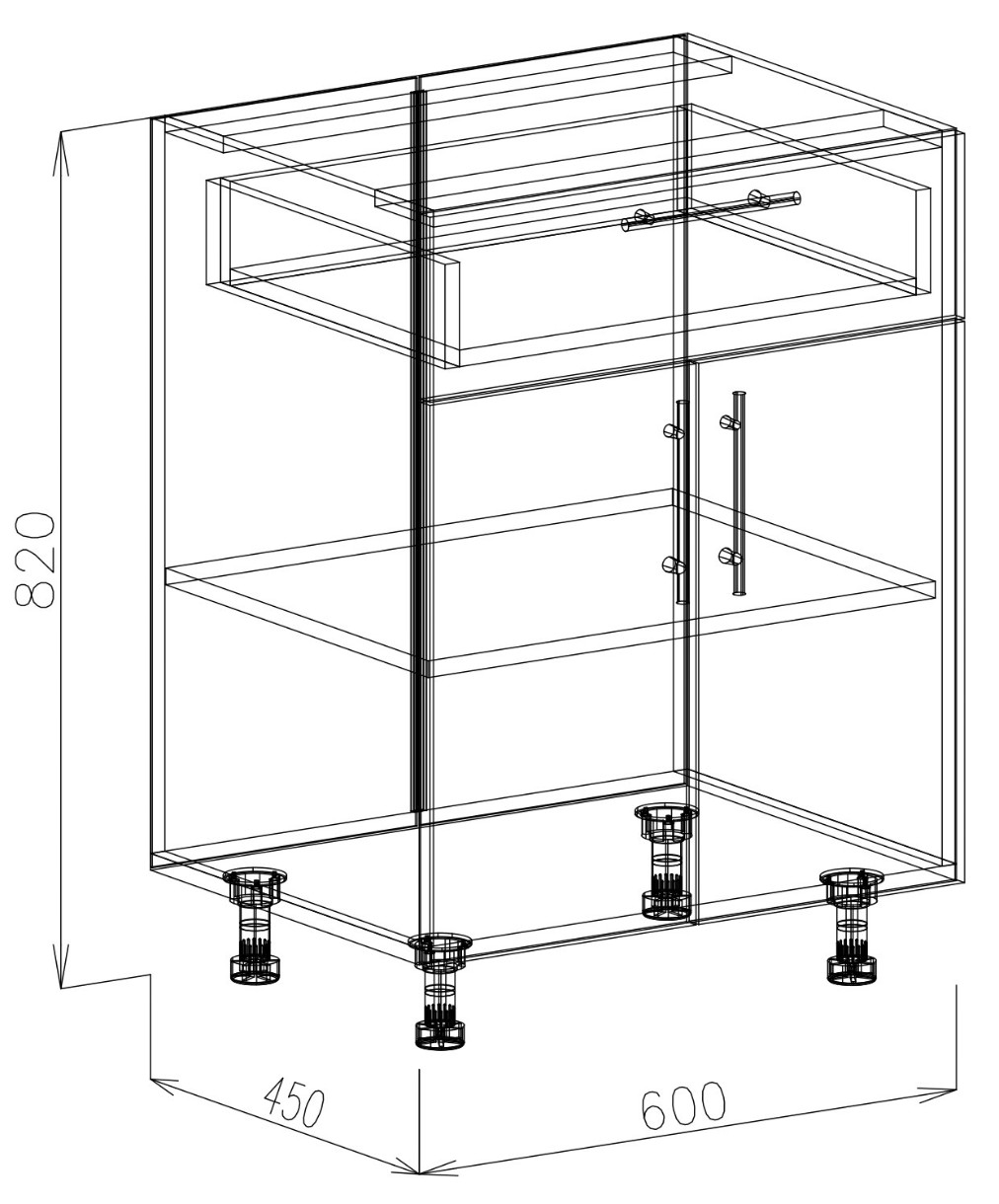 — Modul inferior cu 1 sertar, 1 raft, 2 uși (NS60-DS) (1 buc.): 600*720*450/600 mm