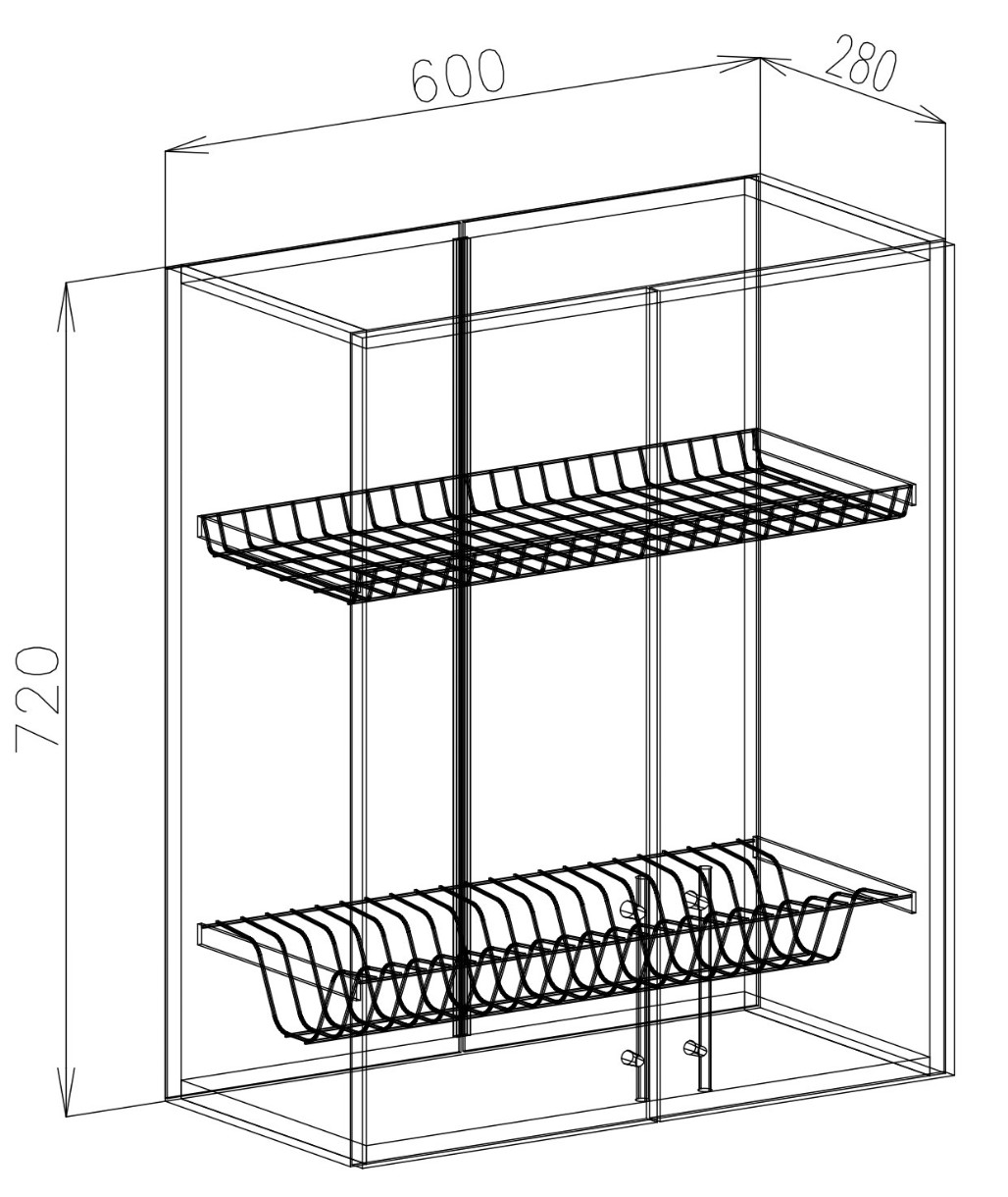 — Modul superior pentru uscător pentru vase cu 2 uși (SS-60) (1 buc.): 600*720*280 mm