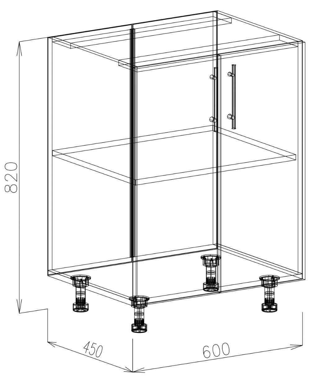 — Modul inferior cu 1 raft, 2 uși (NS60) (1 buc.): 600*720*280 mm